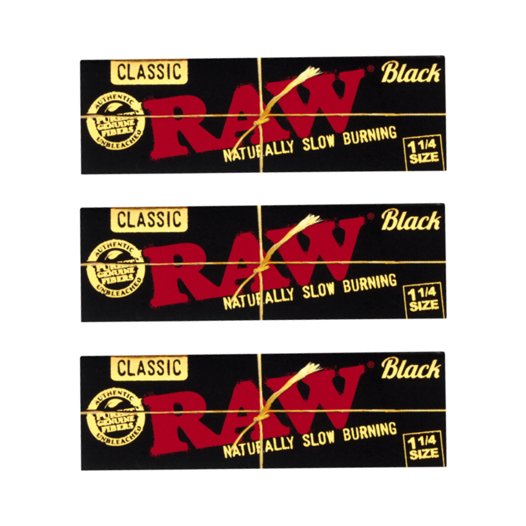 Raw 1 1/4 Inch Rolling Paper Classic Black l 3-Pack